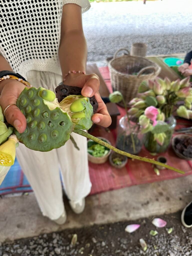 It turned out to be a very interesting tour and it was great to hear the operation is providing meaningful employment for vulnerable local women and caring for the environment and sustainability by using every part of the lotus. We sampled lotus tea and lotus cookies while waiting for the tour to begin and they appear to have made an entire lunch menu with lotus turning up in every course including ice cream.