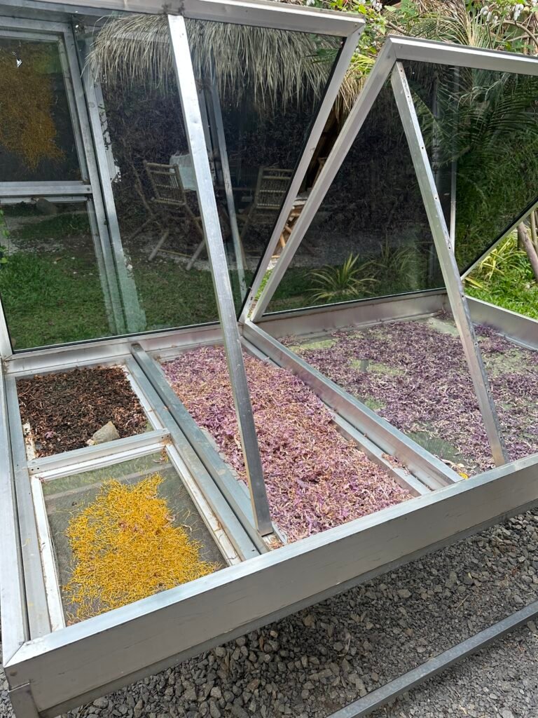 The creation of silk was the most impressive and labour intensive process. They use natural colours for dying including red curry seeds.