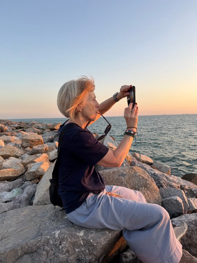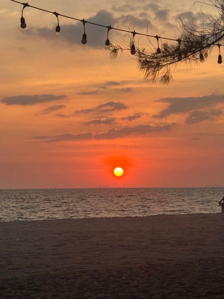 Rayong is an industrial town, with (I think) petroleum manufacturing plants on both sides of the city. So as well as watching the sun going down, and enjoying a beer, we also watched the many ships out on the horizon and the fishing boats from the local port.